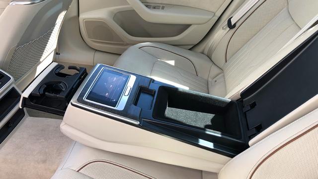 奥迪A6L的其他储物空间就显得有点捉襟见肘了,除了手套箱、车门杯架储物格,就只有前排中央两个杯架和一个中央扶手箱,这个中央扶手箱还比较浅,只有一个眼镜盒的深度,日常也就放个钱包或者票据。后排中央扶手同样有两个杯架及一个不大的储物格。A6L的车内储物空间,如果作为一辆商务轿车是足够的,但要是作为家用就有些不够了。