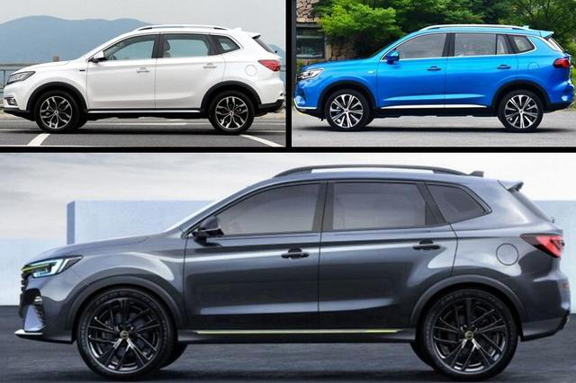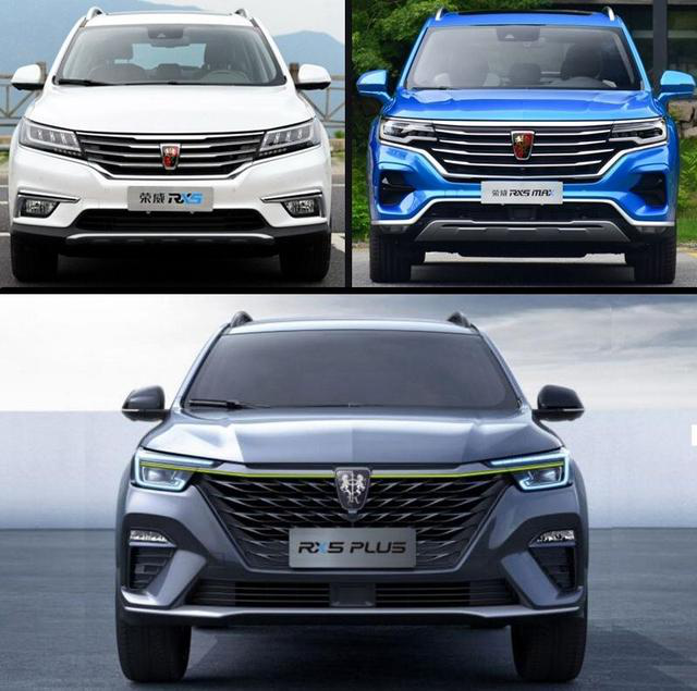 车身部分:与2016年荣威RX5(白车)和2019年荣威RX5 MAX(蓝车)相比,新车腰线部分的动感更强。黄金分割的整车比例布局,则是继承荣威品牌的家族特征,修长流畅,一气呵成。车身侧面基本与现款RX5保持一致,并增加了镀铬装饰点缀,尾部方面,新车采用了多边形尾灯组,,并由一根镀铬饰条相连接,设计上像荣威RX5 MAX靠拢。同时,其尾部右下方标有“RX5 PLUS”字样,成为其全新名称。