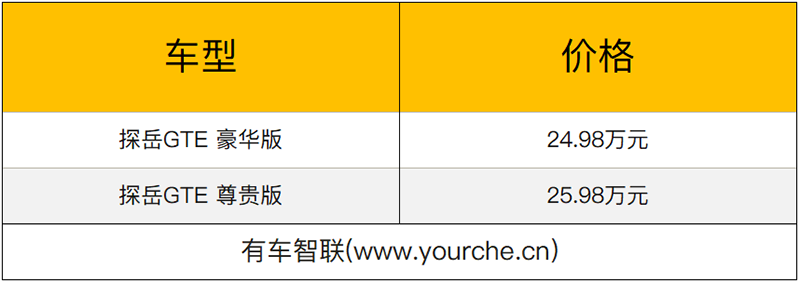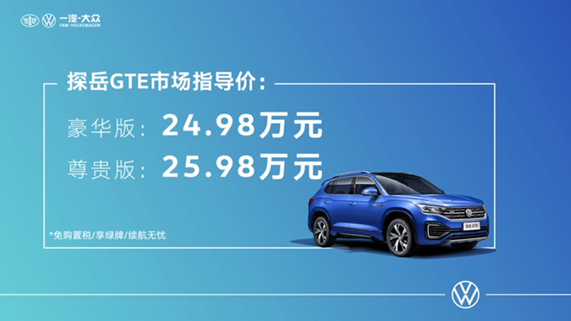 4月25日,一汽-大众探岳GTE正式上市。新车共推出豪华版和尊贵版2款车型,其售价分别为24.98万元和25.98万元。与此同时,一汽-大众GTE技术品牌也正式发布。
