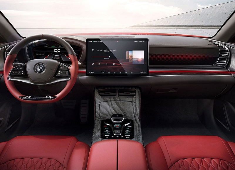 内饰方面,采用了黑红撞色,并采用了对称式设计,配备大尺寸悬浮式中控屏,内饰科技气息浓厚。动力方面,比亚迪DM版搭载2.0T混动系统,NEDC纯电续航里程为81公里。比亚迪汉EV提供单电机和双电机两种车型,续航方面,提供506公里、550公里、605公里三种续航。