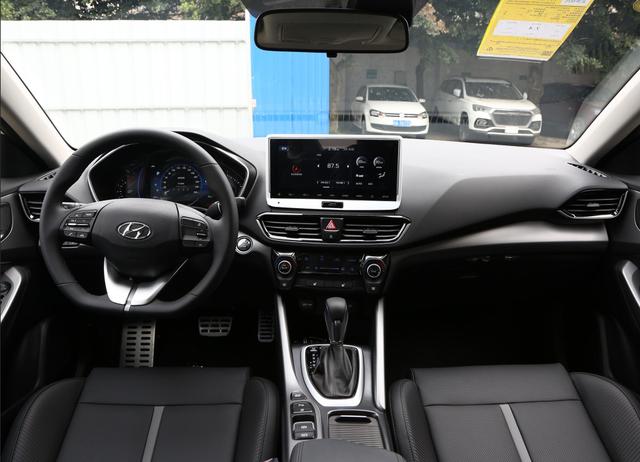 内饰方面采用了现代家族化的风格,车内营造出了比较强的运动感,比如加入了碳纤维样式的装饰板、金属拉丝工艺的装饰、金属踏板、带回正提示线的方向盘。此外还拥有大尺寸的中控屏液晶仪表盘,和四种驾驶模式,运动,经济,智能,普通。并且自带跑车声浪,能营造运动氛围。