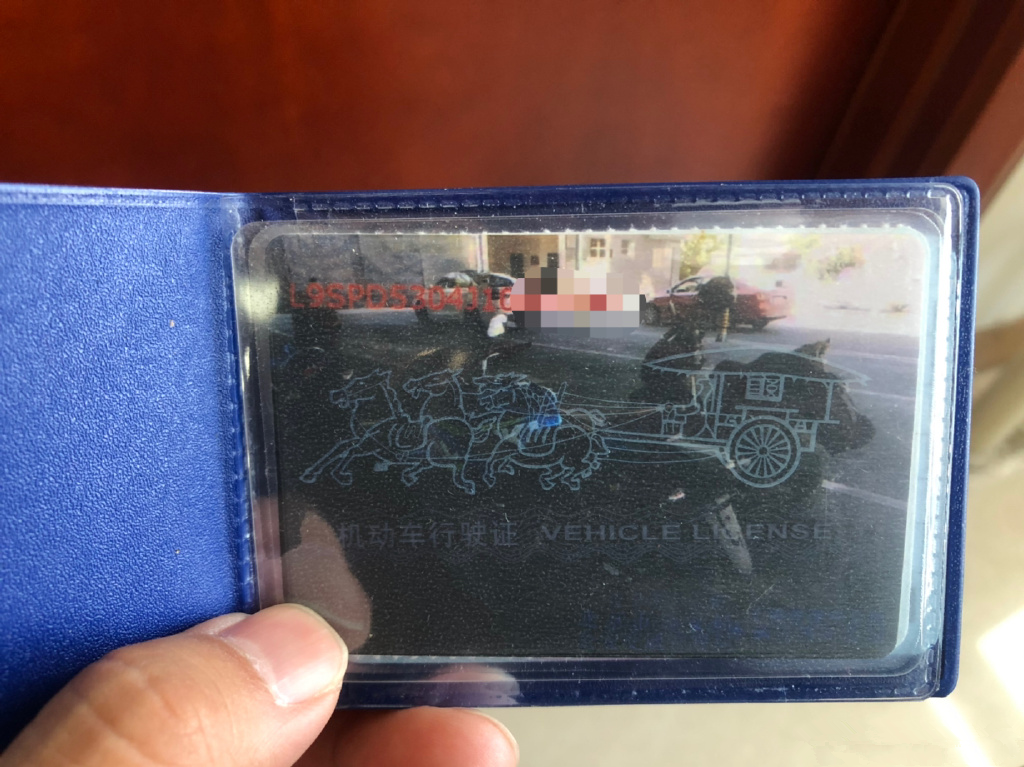 如果你的行驶本照片像这张一样,恭喜你走大运了,想罚都难!你的摩托车装箱子了吗?