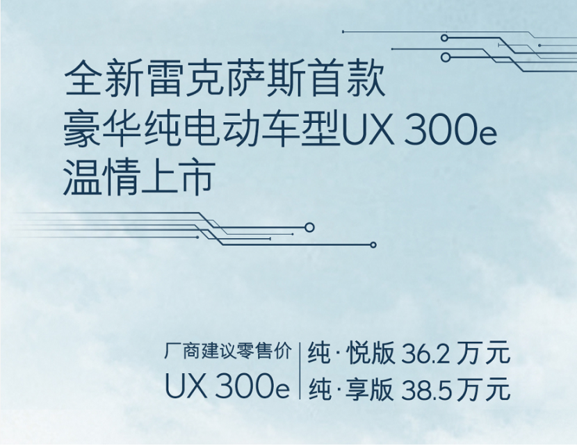 说了这么多,该聊聊价格了,雷克萨斯UX300e售价36.2万-38.5万元,全系共2款车型。