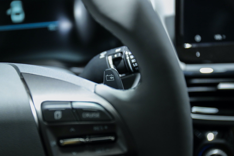 如何将能量回收系统实际应用到车型之中,各家尽显其招。最具代表性的当属菲斯塔纯电动采用了能量回收拨片设计。该拨片位于方向盘下方,将回收等级设置为0、1、2、3四个挡位,驾驶者以“左加右减”的方式,轻松实现能量的回收。在路况允许的情况下,驾驶员扳住左侧拨片不放,还可帮助车辆在一定距离上实现慢慢刹停。整个过程,既高效又便捷,且丝毫不会给驾驶者在驾驶途中带来困扰。