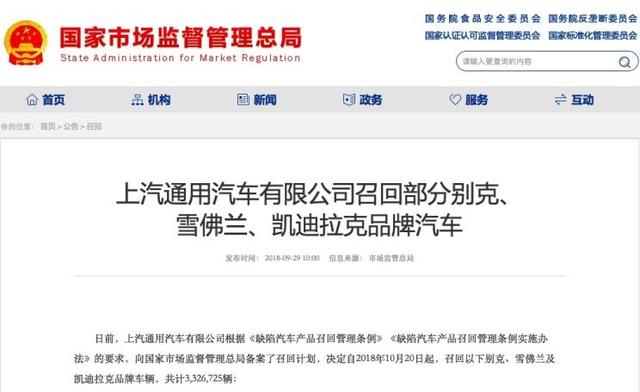 记得在2018年9月29日,上汽通用汽车有限公司就根据《缺陷汽车产品召回管理条例》《缺陷汽车产品召回管理条例实施办法》的要求,向国家市场监督管理总局备案了召回计划,决定自2018年10月20日起,召回别克、雪佛兰及凯迪拉克品牌车辆,共计3,326,725辆。而在这其中,光是召回的威朗两厢、三厢版车型就超过了50万辆。至于召回的原因,其实也不难猜到,还是因为质量问题。