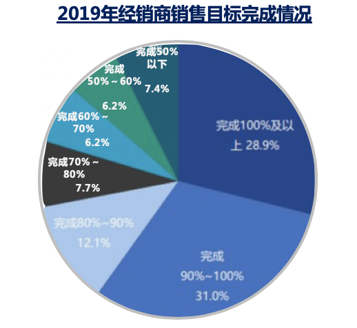 4月16日,中国汽车流通协会发布了《中国汽车流通行业蓝皮书》。蓝皮书显示,2019年中国汽车经销商的销量、收入、利润和现金流都处于极为严峻的状态;2019年完成全年销售目标的经销商,仅占28.9%,7.4%的经销商完成销售目标不足50%;且经销商亏损的比例在继续增加,2019年经销商亏损面扩大至41%,盈利比例缩减到29.7%。