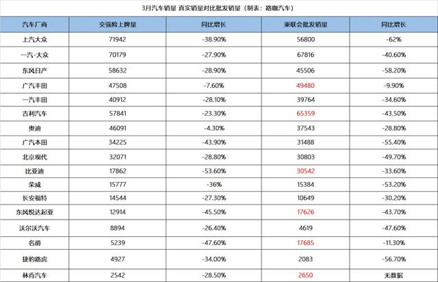 像上汽大众、东风日产这样的企业举动还有不少,表格中能看到,还有福特、沃尔沃、捷豹路虎。像一汽-大众般尽力保持真实销售和批发销量持平的,有广汽本田、北京现代、上汽荣威等。