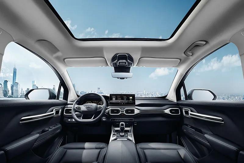 SUV最注重视野,宽敞的视野加上较高的坐姿,能让人拥有更好的驾驶感受,因此豪越拥有宽达 1.4 米的前风挡透光区,在确保前风挡的安全强度下,追求极致窄边框设计,达到近乎 100%的“屏占比”,堪称汽车界的“水滴全面屏”。