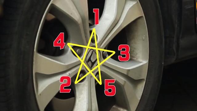 之后,抽出车底的轮胎,逆时针旋转千斤顶手柄,降下车身,确保车轮着地。按照对角线的方式上紧螺丝,这会也可以借助身体的力量。