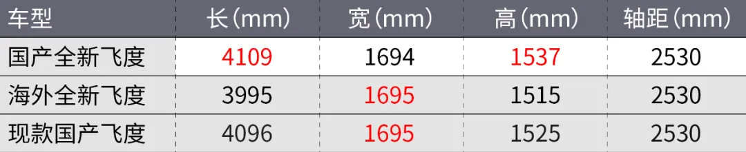 此外,为了减小低速碰撞时的受损程度,全新国产飞度也像老款GK5一样使用了更加突出的前后保险杠。也正因如此,国产版全新飞度相比于海外版本长了114mm,达到了4109mm,但宽度却少了1mm。至于车身高度方面,也许是因为国内路况的因素,相比于海外版飞度,国产全新飞度在高度上提高了22mm,而轴距则与海外版保持了一致。