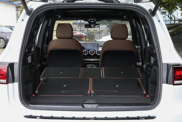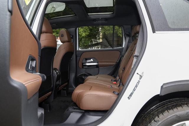 而与众多7座SUV一样,奔驰GLB的第三排座椅还是比较单薄,通过第二排座椅背部的拉手即可快速翻折第二排座椅后进入第三排。好在座椅填充物扎实,对人体的包裹很到位,并且配有可单独调节的腿托。
