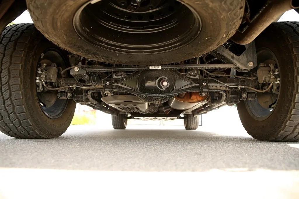 而长城炮越野版并不是非承载式车身结构,而是采用了前双叉臂,后整体桥的形式。同时,它的三把锁指的是前桥差速锁、中央差速锁及后桥差速锁,长城炮越野版前后差速锁属于硬性连接,并在中控右下方区域有独立的开关按键,便于驾驶员根据路况从而选择使用。