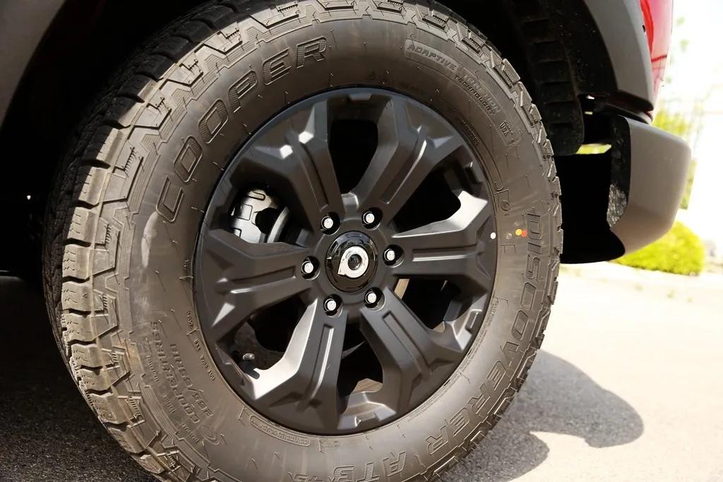 顶配车型还配备了百路驰KO2全地形AT轮胎,(图中为非顶配车型,轮胎为固铂AT34S)以及K-MAN的氮气避震,如此一来,又为你省去不少后期改装费用。