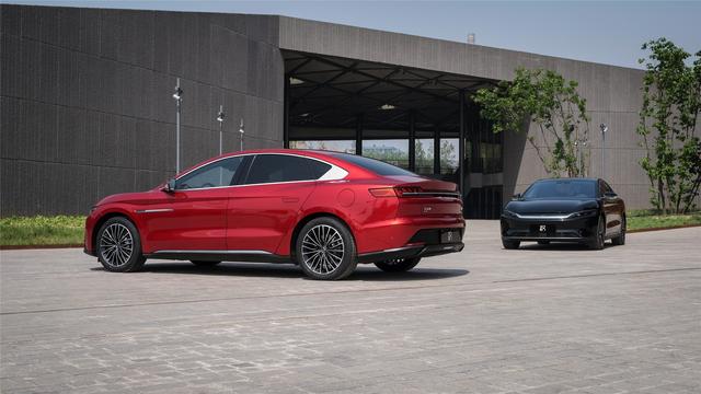 实拍图片中红色车型为四驱高性能版本,黑色车型为前驱长续航版本,此外实拍车型为试装车,具体细节与配置以最终量产版车型为准。