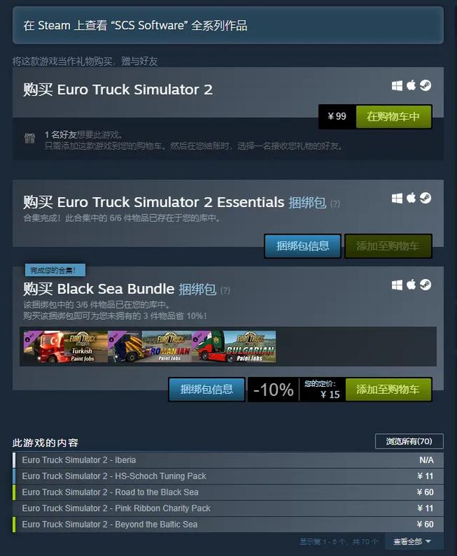 目前这款游戏在STEAM上的售价是99元人民币,如果算上游戏本体以及全地图DLC的话,总共需要422元。虽然看起来有些昂贵,但《欧卡2》经常会推出优惠活动,3-4折入手游戏本体并非是件难事。当然,如果你把DLC全部买入的话,就算打折可能还是得接近300元人民币,不过与吃鸡、王者那些氪金手游相比,应该不算贵吧?