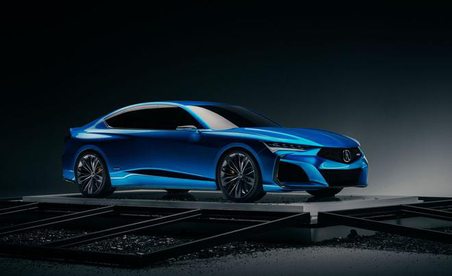 外观部分,新车延续了Acura Precision概念车的美感和风格,拥有更动感的低车身姿态,以及从A柱向前延伸且带有较大弧度的机舱罩,力量感十足。细节方面,前脸采用家族标志性的多边形进气格栅,不仅大面积提高了进气量,而且还内嵌了熏黑矩阵发散式中网;两侧狭长的矩阵式LED大灯组看起来非常凶悍,勾型日间行车灯非常具有辨识度;下方包围同样不简单,黑色元素一直往上延伸至雾灯区域上方,形成一种多层次的大包围态势。