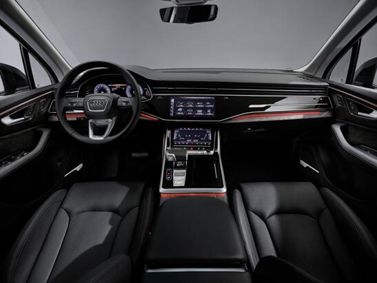 内饰方面,全新奥迪Q7将采用最新的“三屏联动”布局:12.3英寸全液晶虚拟驾驶舱、10.1英寸上方中央触摸显示屏、8.6英寸下方中央触摸显示屏,相比而言内饰科技感、豪华感都有显著提升。
