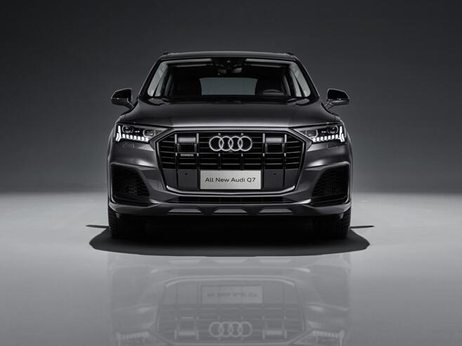 外观方面,全新Q7采用了奥迪SUV家族最新的设计语言,前脸匹配夸张的八边形一体式进气格栅,配六根垂直饰条,与奥迪家族旗舰级SUV——全新奥迪Q8 (配置|询价)一样重塑了“罗马立柱式”的经典,前保险杠搭配磨砂银饰板,打造出更加雄浑大气的前脸造型,相比老款更有气势。LED矩阵大灯的日行灯改为点阵式设计,带有流水转向灯功能,保险杠两侧进气口加入L型饰条。