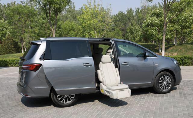 内饰方面,新车采用了12英寸悬浮式触摸中控屏,以及8英寸液晶仪表,车内科技感提升很多。新车减少了车内的实体按键,大多功能都集成在中控屏幕上,空调按键也变成了触摸式,智能化程度大幅提升。现款GL8同样支持CarPlay和CarLife手机互联,以及远程OTA升级功能。此外,老款GL8的脚刹也更换为了电子驻车。新车最大的亮点莫属新增的“福祉版”车型,新款GL8的两个“福祉版”车型可以电动控制第二排右侧的座椅伸出车外,这样的设计对于上下车腿脚不方便的人来说非常友好。不过这个配置需要车主在豪华型或尊贵型版本上多付5万元才能得到。