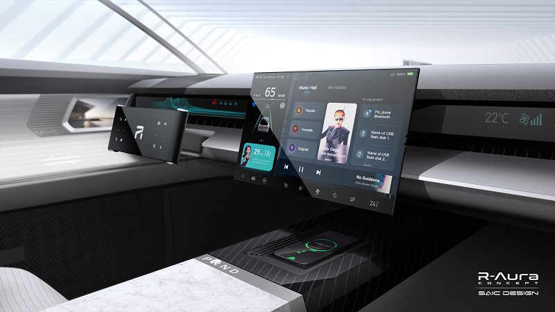 从官图中来看,荣威极光号融合了中国传统水墨画卷元素,运用黑白灰三种配色营造出十分简洁的视觉效果,配置方面,荣威极光号配备了造型新颖的方向盘,据官方介绍,该方向盘能够收缩至中控台内部,同时,其还集成柔性折叠屏,可完全折叠,从而提升驾驶者活动空间,极具科技感。