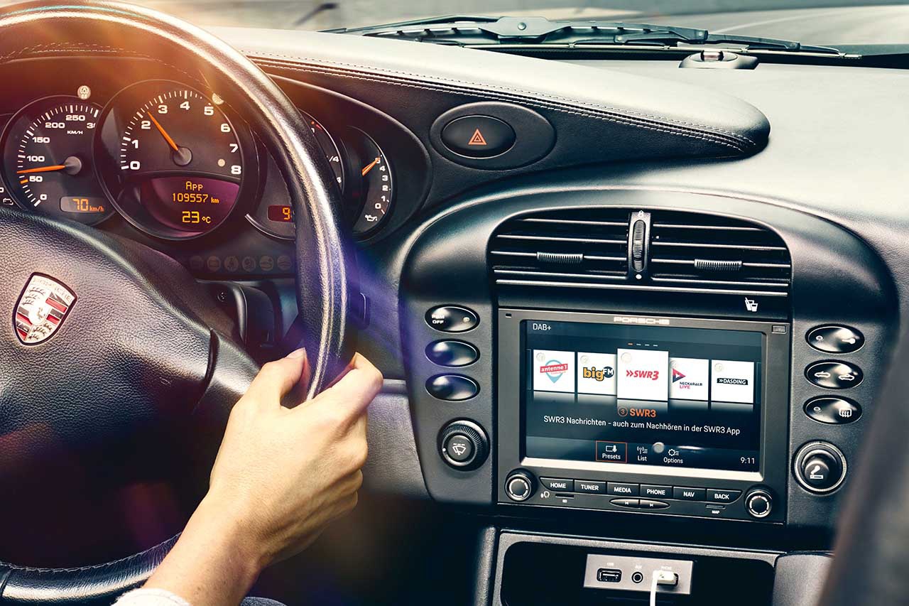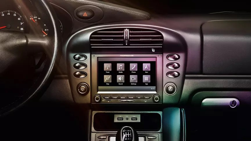 在996型911以及第一代Boxster车型上,保时捷则开发了2-DIN安装位的PCCM Plus。这套娱乐系统具备一块7英寸的触摸屏,并且可以连接Android Auto(安卓手机),还有DAB+数字广播和导航功能。