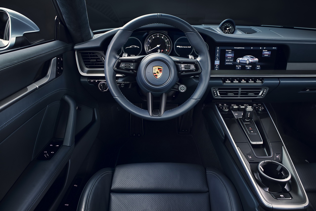 而手动挡的911,其Sport Chrono包括秒表(似乎没有计时秒表,就不是完整的911)、轮胎压力和温度监测、20秒超增压模式、动态发动机支撑胶,以及响应速度更快ECU和TCU程序,和PSM动态管理系统等。