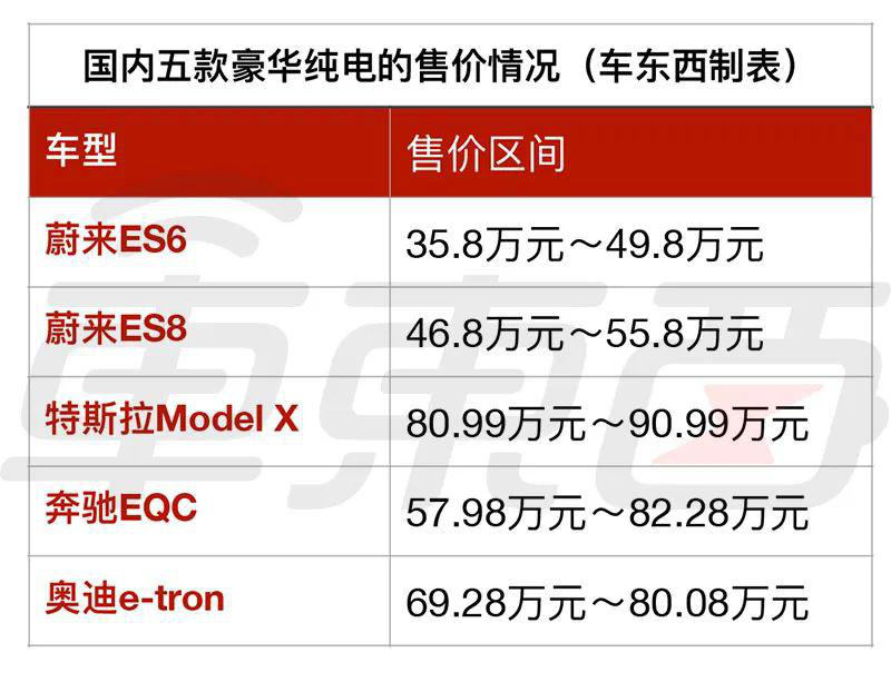 是什么原因导致豪车们进军电动圈屡屡惨败,首先价格方面蔚来的旗舰ES8和特斯拉的Model X则与两者有明显的重叠部分,这四款车进行对比更能说明问题。
