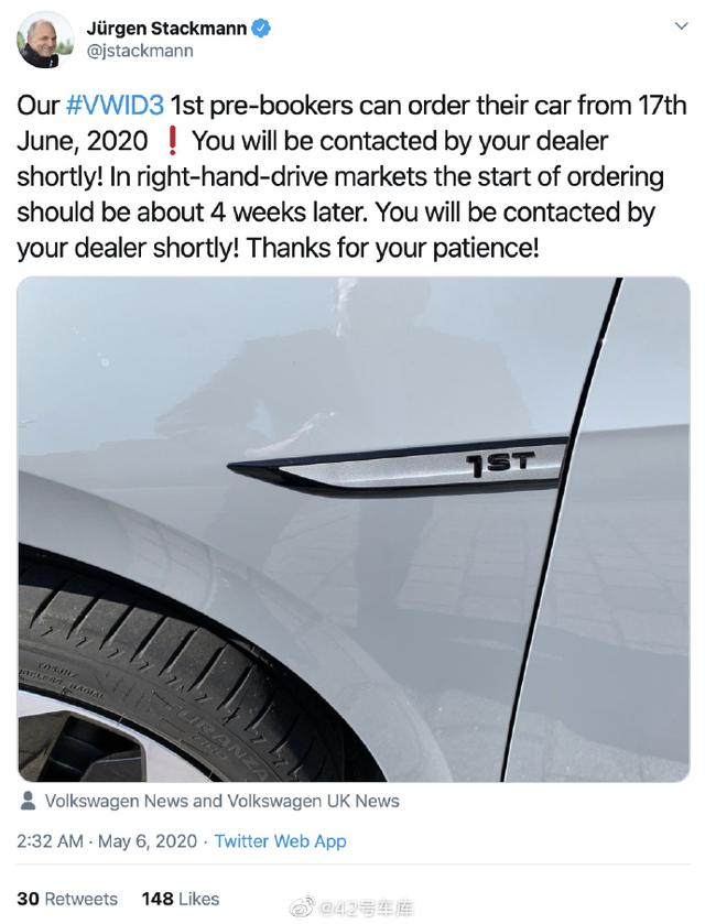 众所周知,今年爆发的新冠疫情几乎影响到了全球所有的汽车工厂,不过,从Stackmann的推特内容判断,大众集团还是优先保障了ID.3的顺利交付。