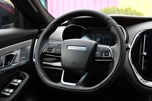 平底方向盘的设计还是带着点运动性的,无论是缝线还是做工都有着不错的表现,在方向盘上也集成了多媒体控制系统、定速巡航等功能。