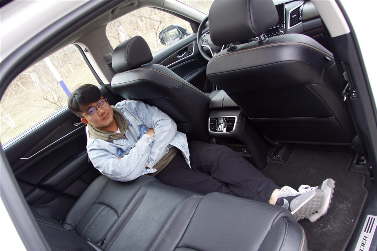 在新款冠道的后排空间面前,语言和比划拳头、指头数量的测量方法都显得贫乏,所以只能让身高1米8的佟哥坐在后排地板上来直观地演示它的空间了,在有四驱的前提下,冠道的后排地板依然是平的,佟哥甚至可以舒舒服服地在平坦的后排地板上葛优躺了。