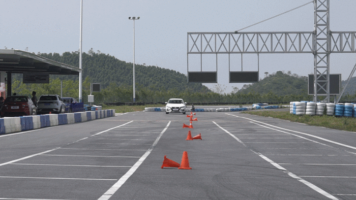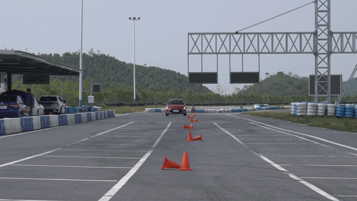15m绕桩项目中,雷凌也给到了我们满意的表现。在车身扎进桩桶列时,熟悉的精准转向手感及灵动的车身动态都给到了我们很强的信心;在两两桩桶中间进行加速的瞬间,随着油门踏板的加深,动力的释放也非常及时,整个绕桩的节奏感非常优秀。
