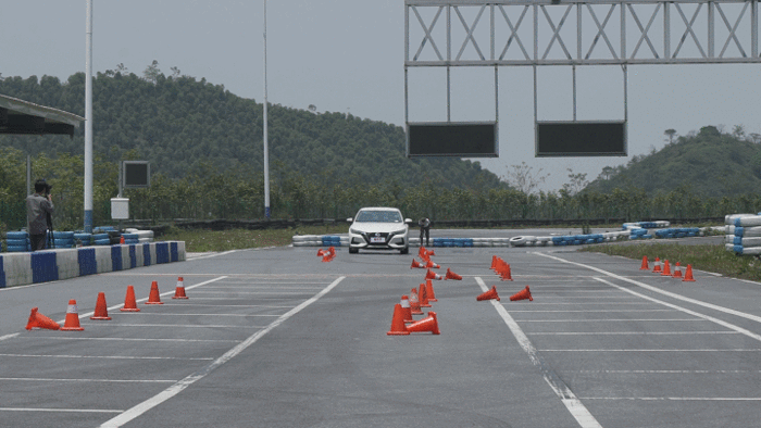 在15米绕桩测试中,支撑性不错的悬挂系统与动力匹配在这一环节中可谓是功不可没。在进行绕桩的过程中,车身即便连续大幅度转向也不会有明显的重心转移现象出现,车身动态虽不及雷凌般凌厉,但也基本满足了随心所欲的要求。此外,在每个桩筒中间加速的过程,轩逸的动力响应性也非常不错,驾驶者抓住踩油间隙并传达动作时,动力也能够迅速地传递在轮胎上。总的来说,轩逸的整个绕桩的表现还是非常不错的。