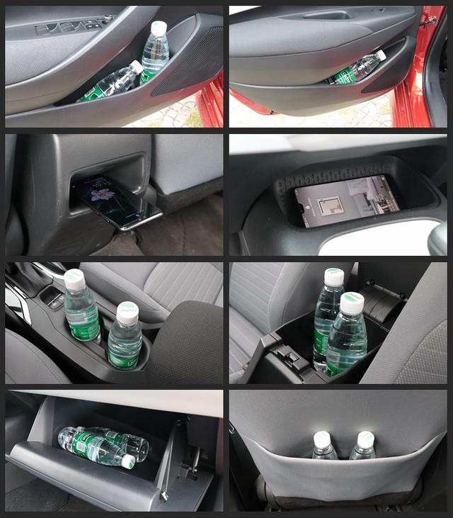 从上述实拍图可以看出,丰田雷凌在使用最频繁的中央储物格设计上,只有最基本的手机钥匙槽、两个不带限位器的杯架,以及容积表现并不优秀的储物盒。不可否认的是,这些储物空间设计的地方都挺合理,但是由于不带防滑垫、限位器,以及容积较小的原因,这辆车的储物空间实用性表现并不是很好,只能是勉强够用的水准。