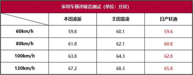 可能很多人注意到了,论数据凌派才是第二名,这里我们还是要强调一句,噪音测试数据只能作参考,和主观感受还是有差异的。比如这次凌派和雷凌,我们一致认为雷凌要比凌派安静,但实际测出来的数据反而是凌派更安静,这个怎么解释呢?我们分析,雷凌的噪音源主要集中在车窗的高度,而噪音计差不多是放在肩部的位置,和玻璃距离更近,所以可能相对来说,对底盘的噪音没有那么灵敏,所以凌派的数据就没有那么高。