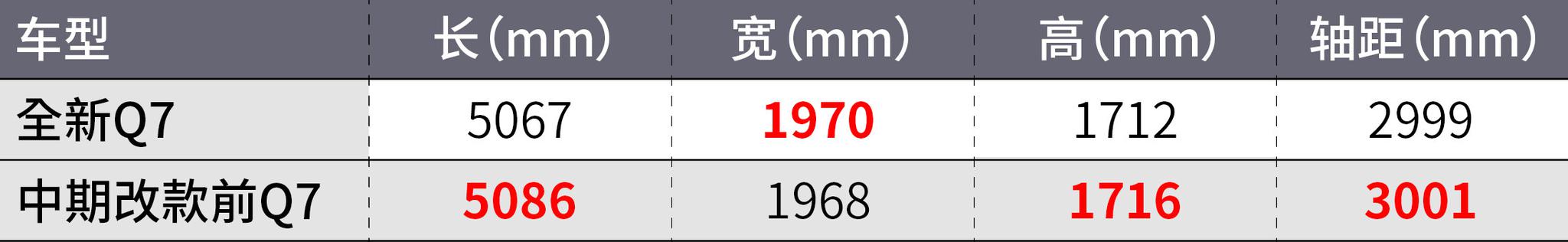 把有悬念的部分放在稍后继续,既然是评测,那起码还是要大概讲讲全新奥迪Q7的整体表现的。尺寸变化不大,轴距略微缩短了一点点。