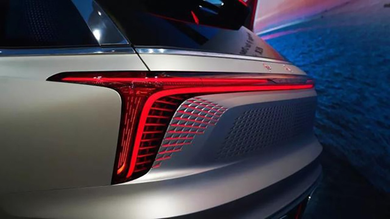 车尾方面,整体造型饱满,最上方有着一个较大尺寸的后扰流板,后风挡玻璃下沿也有着镀铬饰条,与C柱延伸过来的饰条形成环抱的样式。虽然没有车尾的全貌,但能够看到新车将采用贯穿式的尾灯组,而且两侧灯组的尺寸也较大,并且形成一个“7”字样式。最下方的包围上,有装饰性的镀铬排气以及空气扩散器的造型。
