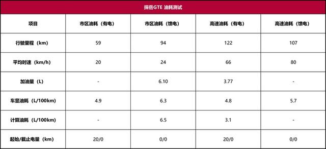 由于这款车是插混的动力结构,因此我们采取了有电和馈电两种工况的油耗测试形式。特别需要指出的是,有电情况下的测试我们并没有采用满电状态,而是电池存有20km的续航状态,另外在测试过程中可能是测试车辆油箱设计有问题,导致出现两次加油跳枪明显不对,因此无法记录。经过实测,市区工况下这款车的表显有电油耗为4.9L/100km、馈电油耗为6.3L/100km。