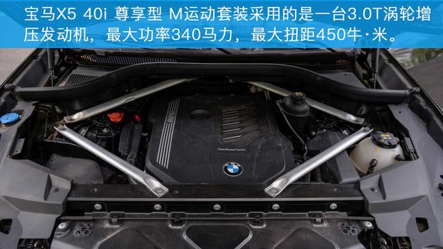 我们本次试驾的宝马X5 40i M运动型采用的是一台3.0T涡轮增压发动机,发动机最大功率340马力,最大扭矩450牛·米。我们可以看作它是上一代车型35i发动机的升级版,功率及扭矩上都进行了提升,与之匹配的是来自采埃孚的8AT变速箱,另外,新车还配备了舒适、运动、节能以及智能4种驾驶模式。