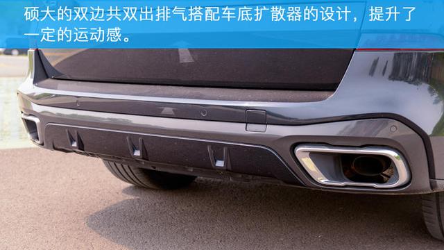 本次试驾的车型配备了M运动外观套件,熏黑的大尺寸雾灯装饰加上位于前翼子板上的鲨鱼鳃孔道视觉效果非常出众。另外双腰线的设计也为车身侧面带来了更好的层次感。轮毂尺寸上宝马X5全系标配20英寸轮毂,并且还可以选装22英寸轮毂,而轮胎尺寸方面试驾车型采用的是前275/35 R22,后315/30 R22的倍耐力P ZERO轮胎。宝马X5车身尺寸分别为4930×2004×1776mm,轴距达到了2975mm,相比老款车型来说有一定提升,但也是同级别车型应有的水平。除此之外,选装了空气悬挂的车型,车身高度可以进行±40毫米范围内的调节,并且会根据驾驶模式对车身高度进行调整。