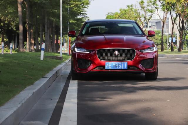 这台车是顶配,是运动外观套件,所以有着更大开口的前杠,除此之外,在它身上很难找到张牙舞爪的元素。我一向很认可这种设计,在几年前捷豹XE刚发布时就很喜欢。动感的营造,不一定要在外观上堆叠各种唬人的棱线或是镀铬件,像捷豹这样简洁匀称的设计,也能很好地呈现设计师对运动的领悟。