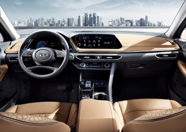 内饰方面,北京现代全新索纳塔基本延续海外版风格,方向盘采用四辐式设计,并配备官方称为翅膀形状的12.3英寸液晶仪表盘,同时镶嵌一块10.25英寸的高清中控屏,下方为带独立屏显的空调控制区域,而传统挡杆也更新为更高级的按键换挡,整体看起来科技感向豪华级看齐。此外,索纳塔在座椅、车门饰板、中控饰板以及中央扶手等处,均采用轻质织物和皮革结合的材质进行包裹,以提升车内质感。