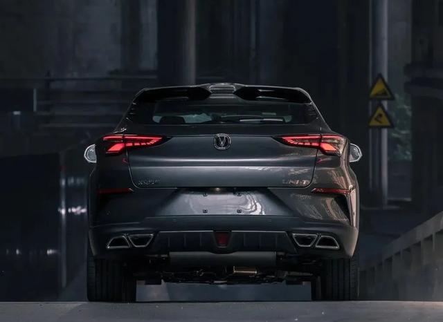 与前脸一样,UNI-T的尾部充满亮点,顶端的尾翼采用两片式设计,看起来很有战斗感,尾灯造型修长,透明灯罩的加入提升了科技感,在所有长安车系中,我认为这个尾灯是最好看的。底部带有四出排气,并且四个都是能冒烟的真排气,而非视觉装饰,中央带有类似F1赛车的雾灯,运动气息是营造到位了。