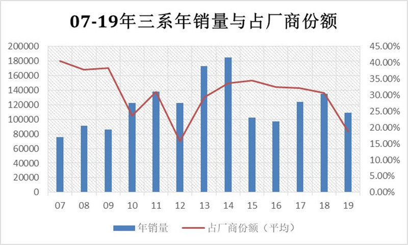 (Excel图表-07-19年三系年销量与占厂商份额)