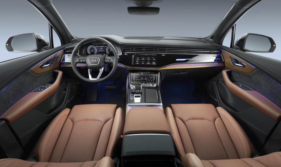 除了电动调节座椅+电动腰托+加热+主驾驶记忆、感应尾门、全景影像、驾驶模式选择等标配以外,像矩阵式LED大灯、隐私玻璃、高级扩展真皮包、四轮转向功能、Bang&Olufsen高级音响、电吸门等高阶配置在全新Q7身上均有搭载。