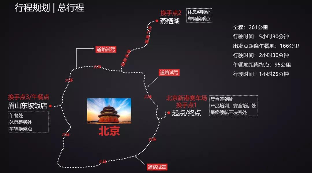 此次续航挑战赛的路线为北京六环路一圈,全程近300km,其中包括乡村、城市、高速等多动路况,故本次续航测试将更具参考价值。