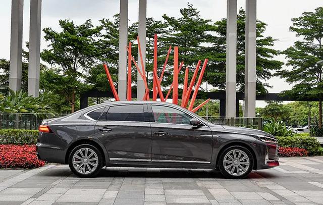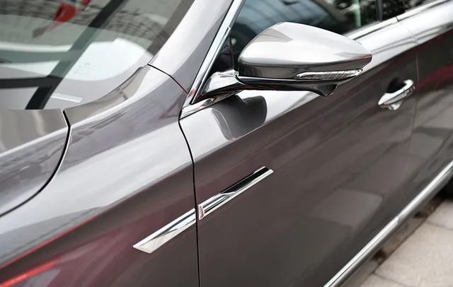 侧面依然能看到老款车型的一丝设计,尤其是A柱至D柱的位置,C柱之后的三角窗是中大型轿车的必要设计,在长轴距的基础上,若强行将长度分摊至前后两道车门,多少会破坏侧面比例,而拥有三角窗之后,则不会出现这种问题。这也是中大型轿车的惯用设计,例如奥迪A6L。