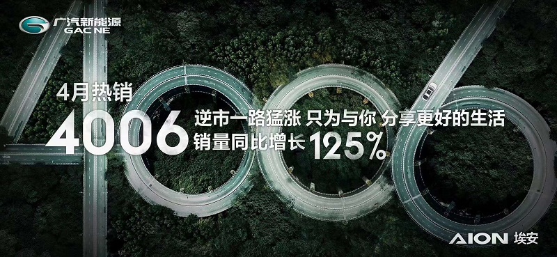 日前,广汽新能源公布了最新的销量数据,数据显示,今年4月广汽新能源共销售新车4006台,同比增长125%,环比增长14%,成功实现逆势上扬,其中主销车型Aion S (配置|询价)功不可没。