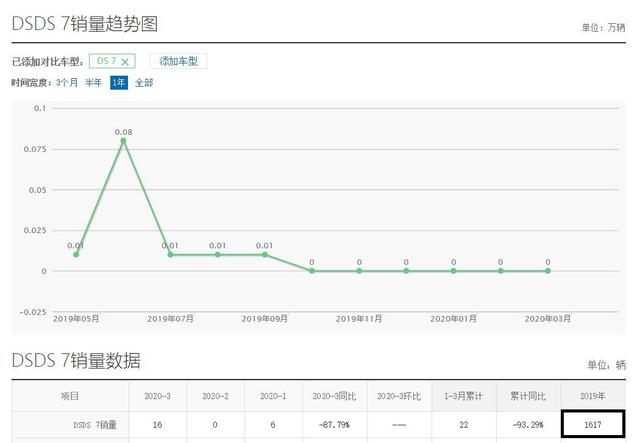 法系车如今在华"混"得并不好,标致、雪铁龙两家品牌销量接连跌破底线,其中标致更是不断在停产一些车型,比如308S、408等等,这也就让消费者对法系车的购入变得更加格外小心。其实,除了标致、雪铁龙卖不好之外,定位高端的DS品牌其实也混得不成人样,不论是DS 4S、DS 5LS、DS 5还是DS6、DS7 (配置|询价),其实际购买情况都是相当惨淡的。就以最新的DS7这款车为例,其在2019年全年销量都只有1617台,比随便一款丰田本田大众旗下的SUV车型月销量还要差的多得多,这你说还怎么"活"?