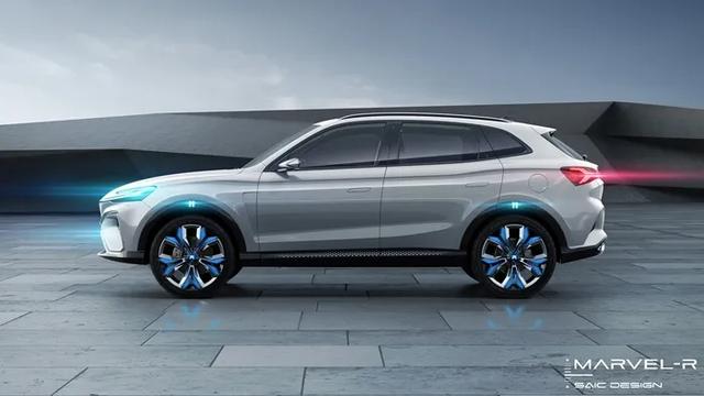 说起来很悬,不必理会,我们只关注第一眼看上去的感受即可,我个人觉得新“R标”还是顺眼的。比车标更重要的是,荣威未来的新能源车型阵列,看起来也挺顺眼的——首款车型是MARVEL-R。