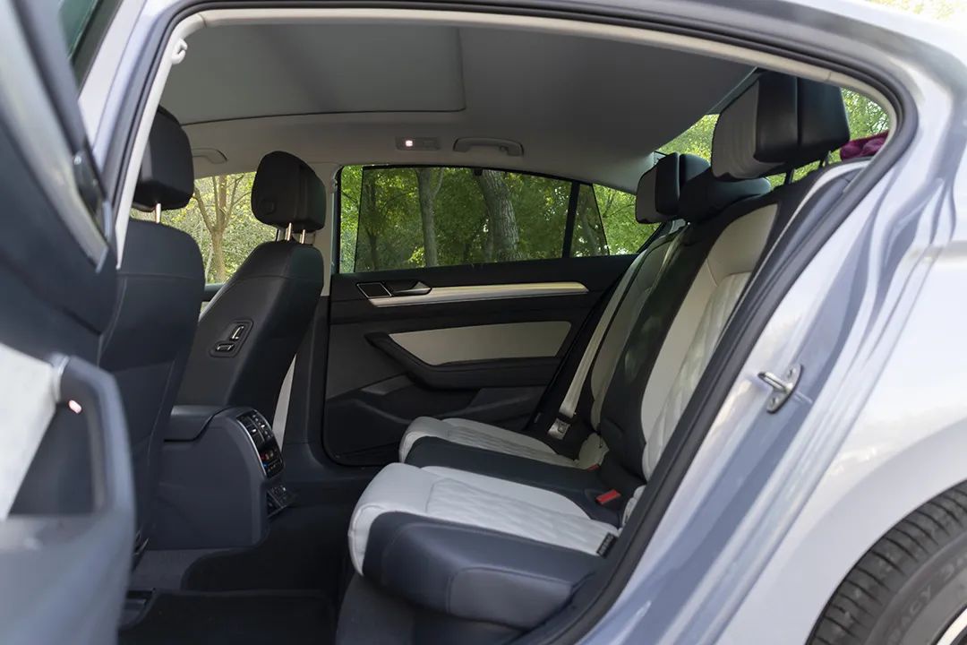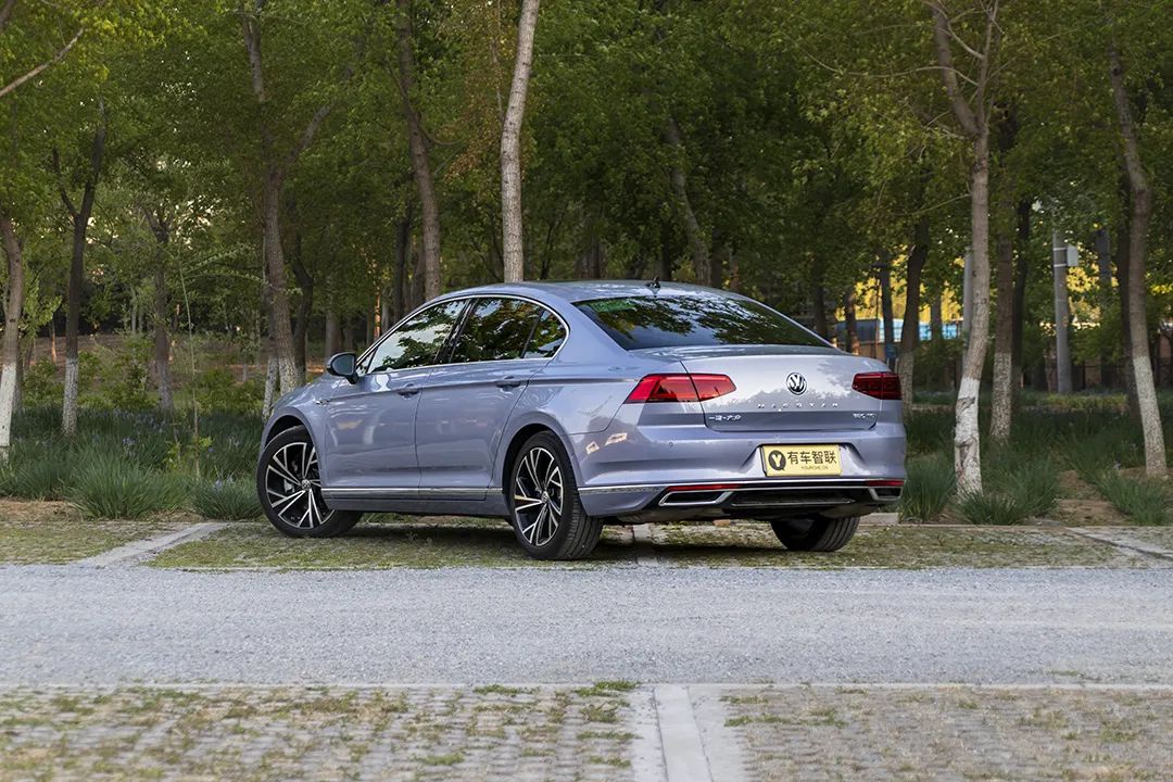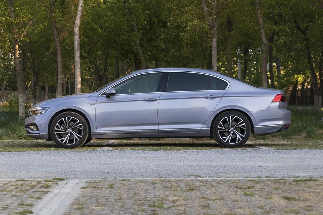 相比于前脸的变化,车身侧面倒并没有给人惊喜。新迈腾的尺寸没有改变,长宽高依旧为4865/1832/1471mm,轴距2871mm。修长的车身比例协调,笔直的腰线从前翼子板上延伸到后尾灯边缘,贯穿整个车身侧面。细节上,后排配备了隐私玻璃,这也是它该有的态度,也给自己省下了贴膜的钱。